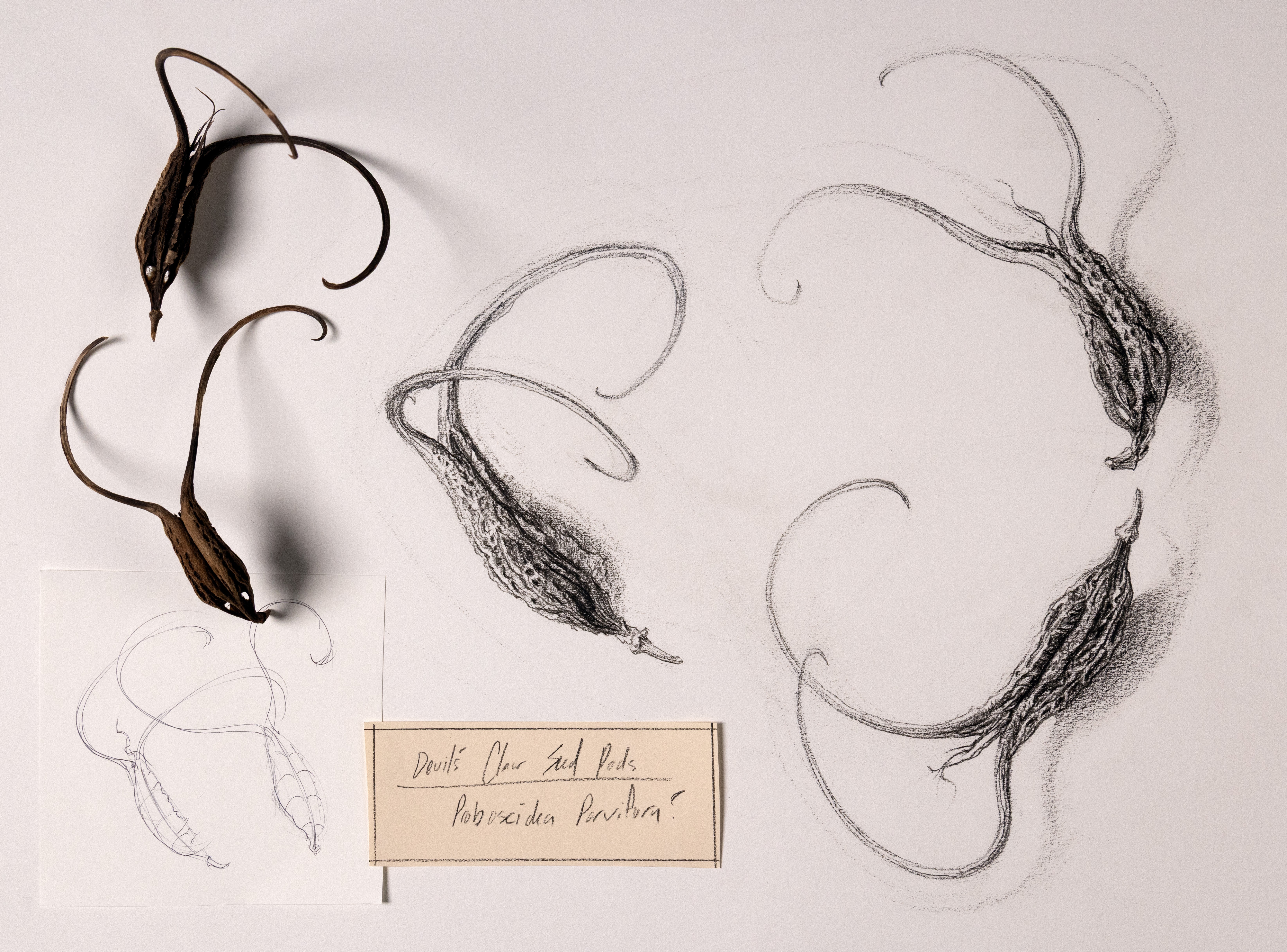 A small collection of found natural objects drawn directly from observation. Each drawing is paired with the actual object it is based on.